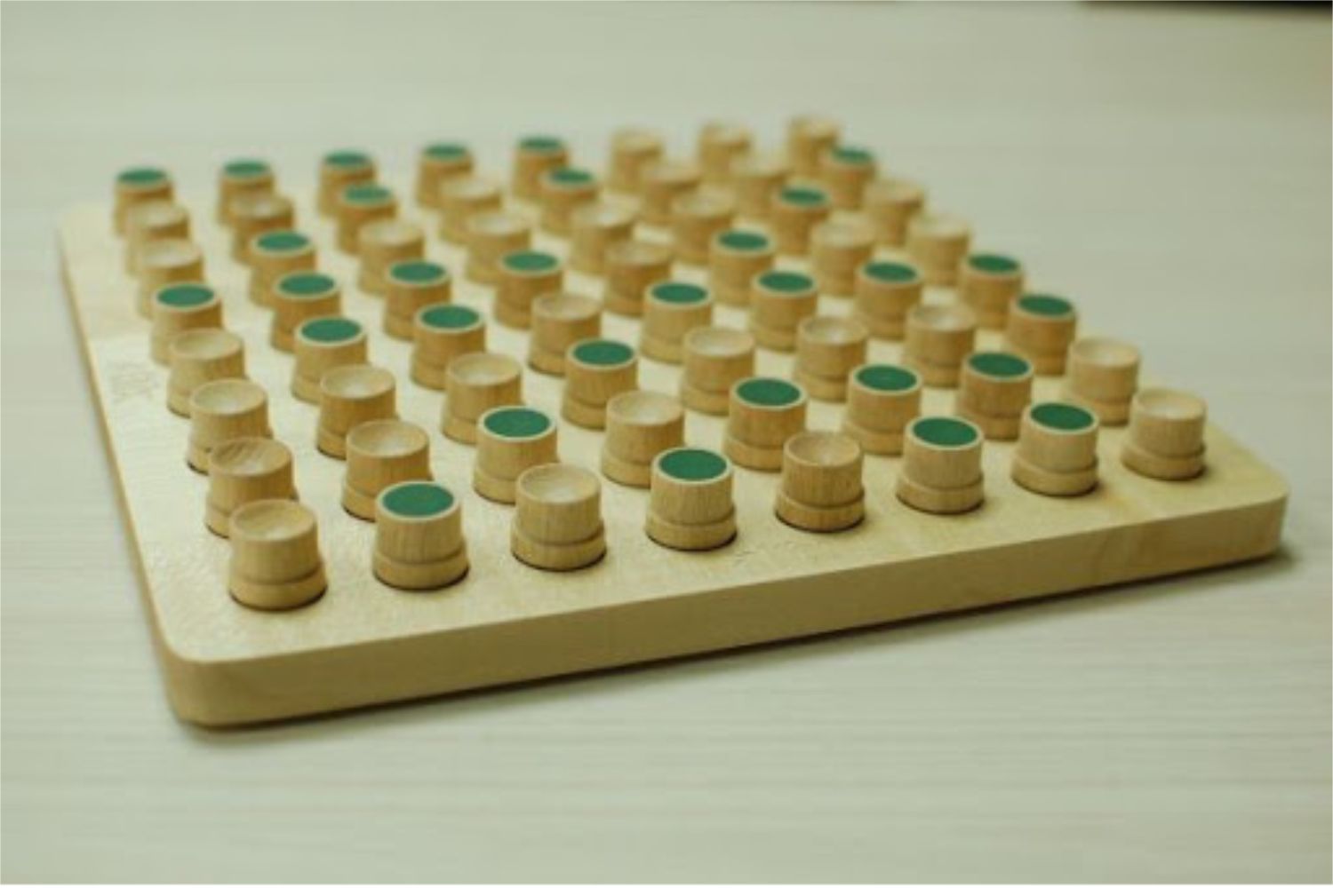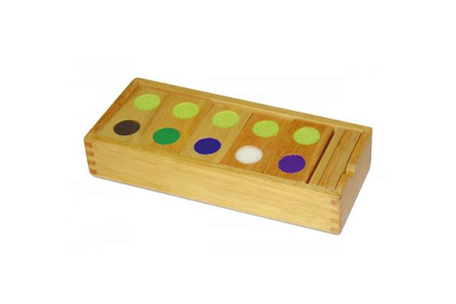 Jocul este compus din 28 piese mari de lemn așezate într-o cutie. Pe fiecare placă de lemn sunt două cercuri umplute cu diferite texturi colorate...