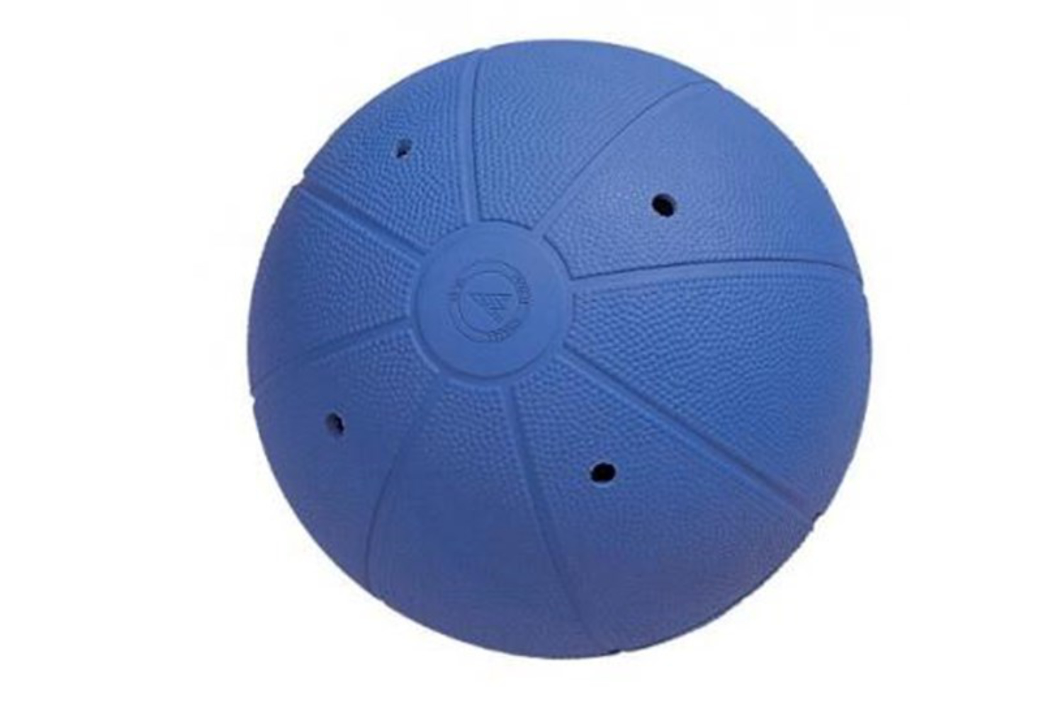 Mingea Goalball este asemănătoare cu mingea pentru gimnastică și are patru găuri prin care se aude mai ușor sunetul făcut de clopoțelul din interior.
