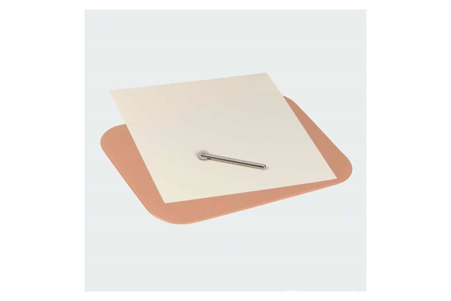 Baza de cauciuc pentru realizarea de desene tactile este de culoare bej și pe ea se pun foliile de plastic pentru a putea realiza desene tactile...