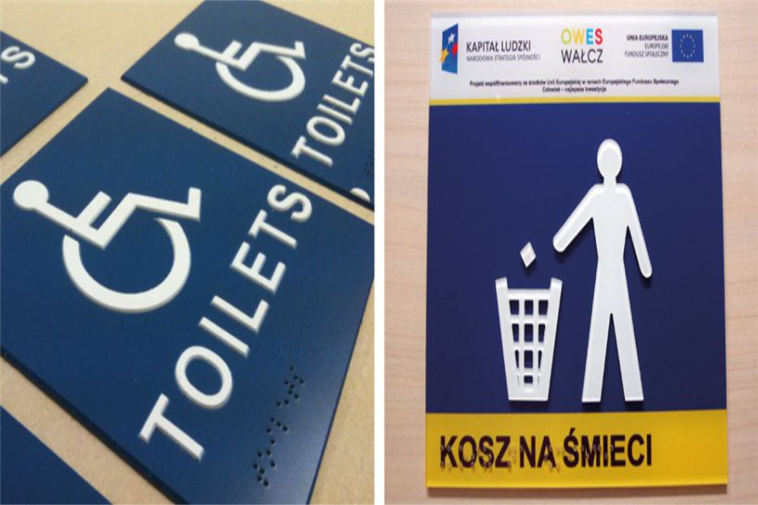 Indicatoare Braille pentru accesibilizare incinte de orice fel, pentru a fi adaptate și persoanelor nevăzătoare.