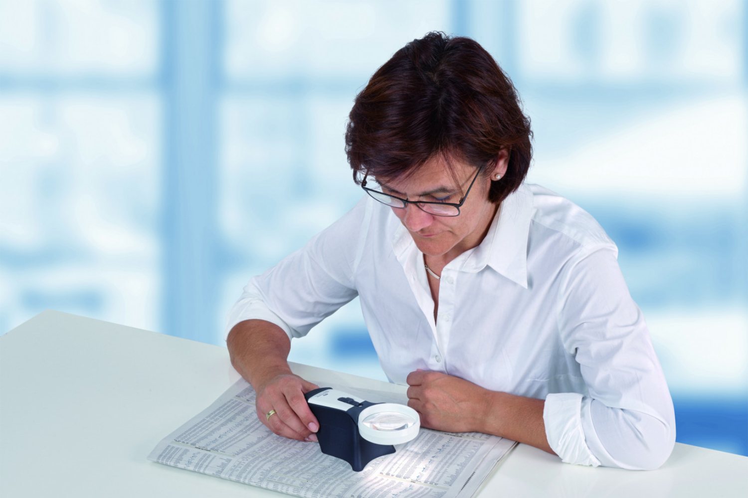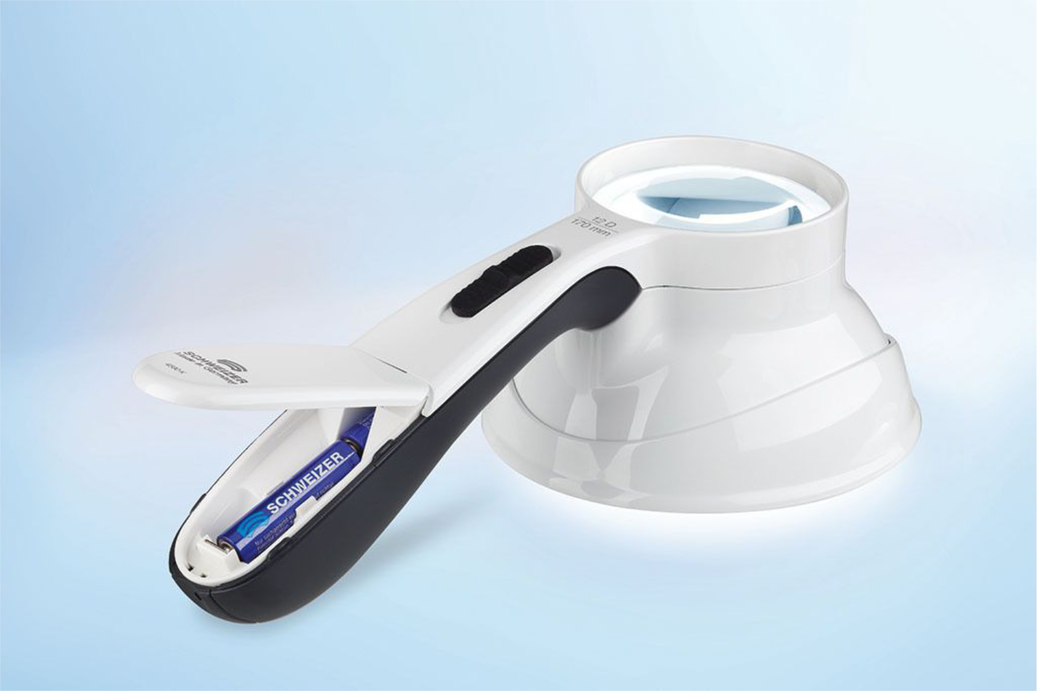 ÖKOLUX plus este o lupă cu suport iluminat alimentat de baterii, cu LED SMD multicip și o gamă de 3 temperaturi de lumină...