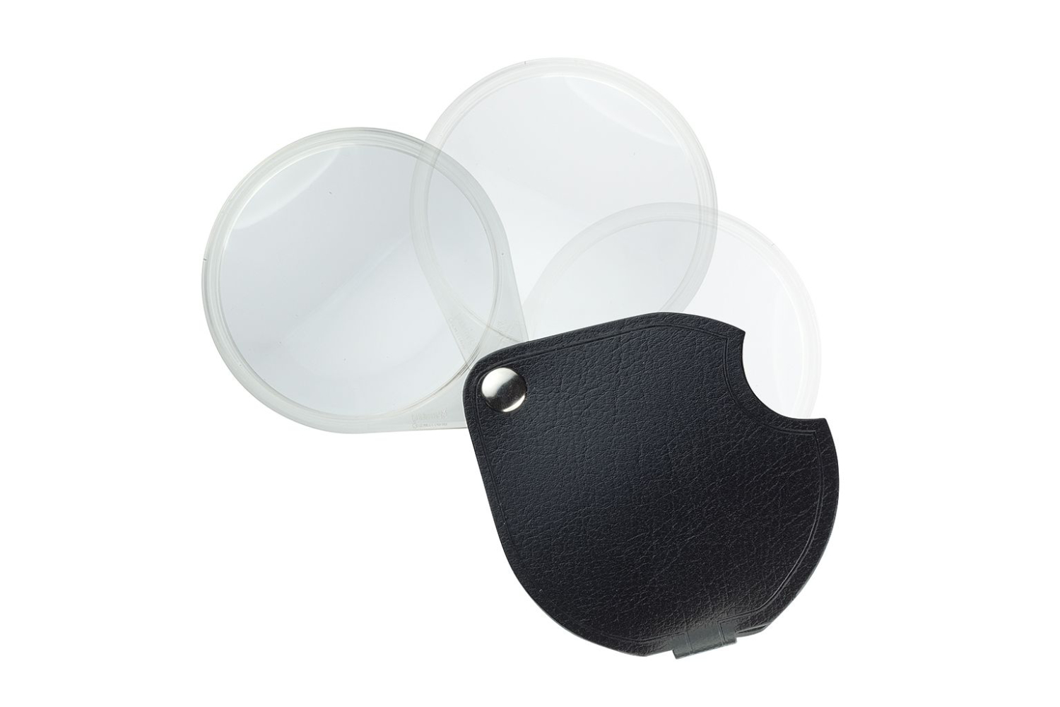 Lupa clasică de buzunar cu un design elegant. Montură din plastic transparent. Carcasă din piele granulată rezistentă. Lentila din sticlă biconvexă.