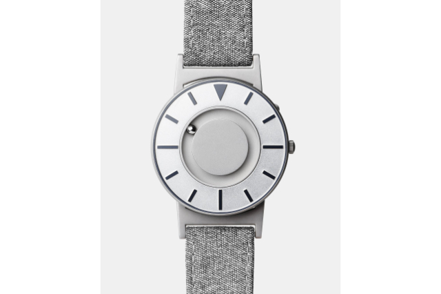 Bradley Compass Graphite se remarcă prin indicatorii orelor în relief în culoare argintie pe fața gri a ceasului. Centrul mat...