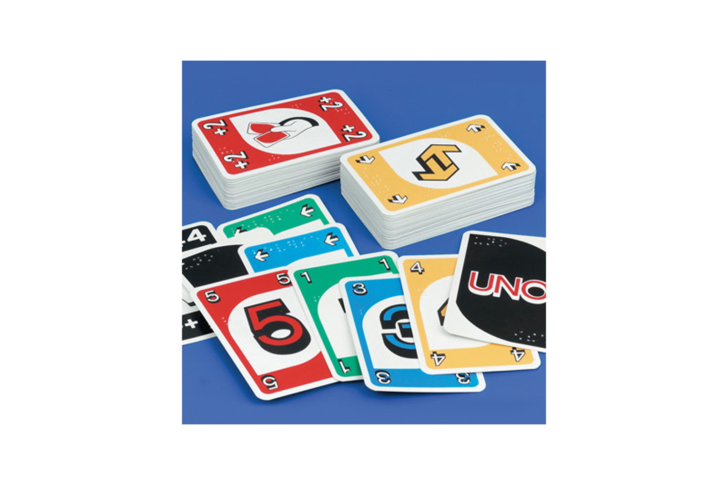 Jocul Uno se joacă cu un pachet de 108 cărți Braille speciale pentru nevăzători și cu deficiențe de vedere. Conceptual, Uno este un joc similar cu Macao.