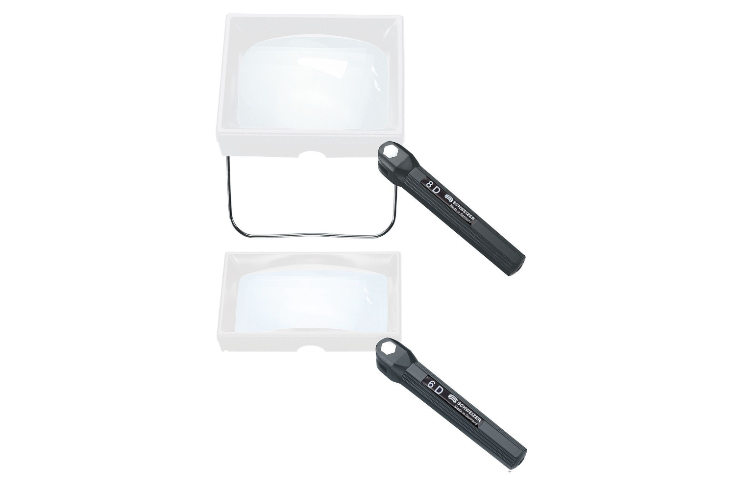 Lupe de mână cu suport pliabil și mâner pliabil. Suport pliabil din metal cu înclinare reglabilă Lentila asferică ușoară. Furnizat cu husă din microfibră.